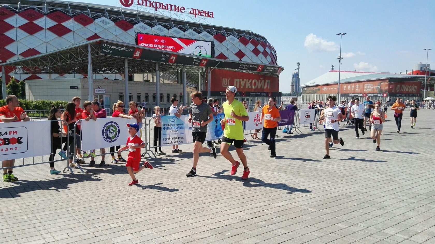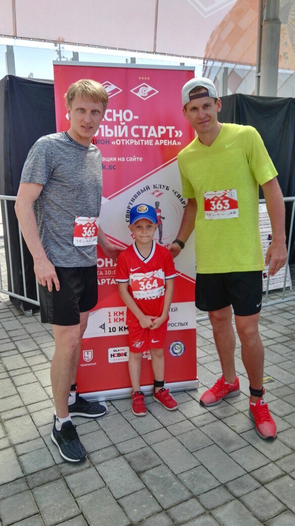 Среди участников забега были известный конькобежец Иван Скобрев и вратарь красно-белых Артем Ребров со своим сыном Платоном.